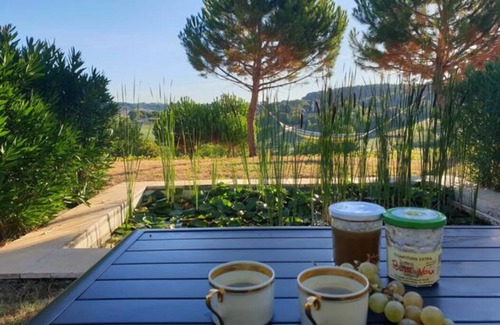 The stone Bastide of Sainte Juliette renovated with taste, offers you the necessary comfort, brightness and space, in a quiet area to spend a pleasant holiday in Quercy region ( Tarn et Garonne, Lot) near a beautiful swimming pool. The house, surrounded by woods and meadows, has a large terrace with a breathtaking view of the valley. Close to amenities and the tourist towns of Lauzerte and Montcuq. In the atmosphere of a family home, the Bastide is adorned with soft colors to offer you the hospitality of a chic and rustic atmosphere.