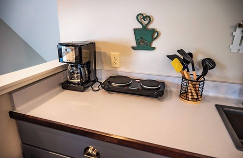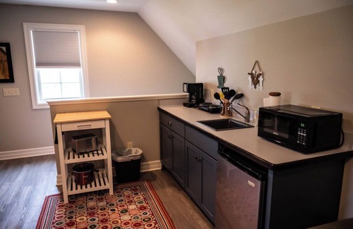 Welcome to Kettle Moraine Flat, hosted by Simple Life Rentals! This charming farmhouse flat is perfect for both the business traveler or weekend traveler. Private flat with a queen size bed, kitchenette with a countertop double burner, and workspace. A sitting area with TV offers a lovely, quiet option over noisy hotels.