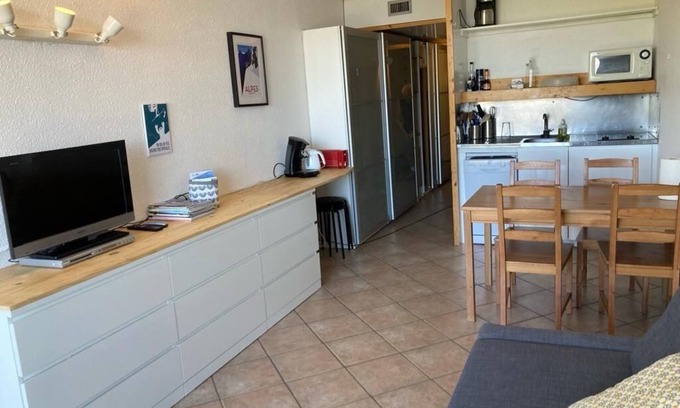 For rent Charming 30m2 Studio for 5 people on the 9th floor (with elevator) facing Mont Blanc.