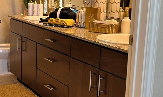 Nestled in Houston, this delightful apartment 2 adorable queen bedrooms, each equipped with a hair dryer for your convenience. With a tranquil atmosphere and 2 bathrooms, one featuring a relaxing bathtub, guests can unwind after a day of exploring. Enjoy the amazing amenities like AC, WiFi, and a fitness room during your stay. A great place to call homebase while you're away, we hope you enjoy your stay.