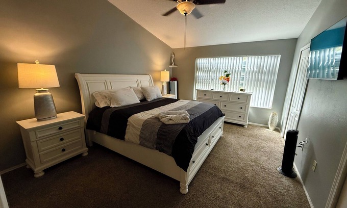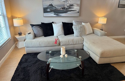 Located in Wesley Chapel, this townhome is a dream. With 2 bedrooms including a king bed, queen bed, and futon, guests will have plenty of space to relax. The 3 bathrooms offer a shower, bathtub, and hair dryer for added convenience. A crib for your infant provides even more comfort. Our place is equipped for both long or short stays to make your holiday one to remember.