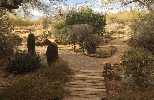 Unique artist's home. Charming one of a kind adobe home with flagstone floors and redwood ceilings. Covered patios. Four working fireplaces. Private atmosphere on two and a half acres of native Sonoran landscape. Close to dining, shopping and hiking. Horse back riding and golf nearby. Wi-Fi and cable tv included. Come experience the true Southwest! Small casita next to main house available for additional fee upon request.