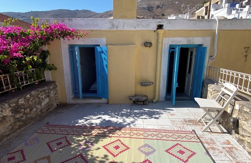 Charming two-floor villa in the heart of Symi, a short walk from the harbor, Pedi, and local amenities. Traditional Greek design meets modern comfort, ideal for a family holiday or romantic escape. Sleeps up to 8 (4 adults + 4 children) in two different family bedrooms with dividers, plus bathroom, kitchen, living room, and spacious patio. The highlight is the private rooftop terrace with stunning views.