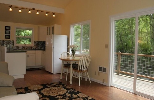 Our lovely cabin is furnished with beautiful antiques, yet has all the amenities of a newly renovated cabin including new kitchen cabinets and counters. The bedroom comes furnished with a queen bed complete with comfortable linens, dresser & plush sofa. All of the comforts of home while being immersed in the peacefulness and serenity of nature.
