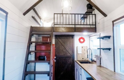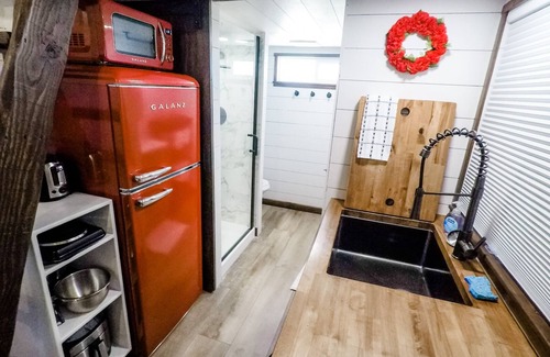 Stunning Tiny Home just built in 2023! Enjoy all the conveniences of instant hot water showers, A/C or Heat, kitchen, etc. while still enjoying the great outdoors.