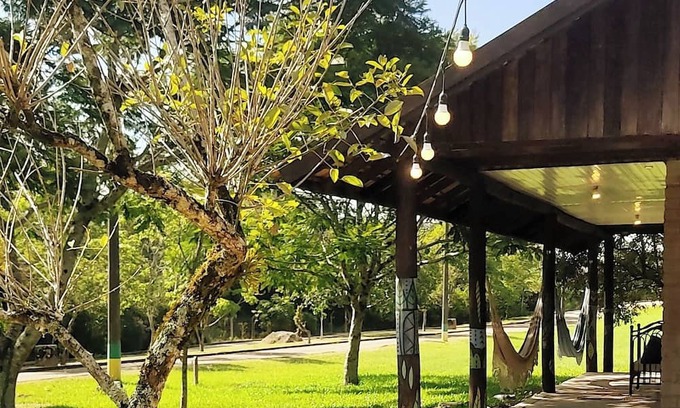 Charmoso Chalé do Riacho localizado na área rural de Novo Hamburgo, há 50 minutos de Porto Alegre. Venha caminhar pelas pedras deste belo riacho de águas cristalinas. Espaço conectado a natureza com muitos lagos e trilhas, tudo dentro de um condomínio privado (Vivendas de Hamburgo). Na casa você encontrará, além do Wi-fi (Fibra Ótica de 200MB) muito espaço para se divertir. Tudo para você aproveitar a vida no campo e recarregar suas energias.
