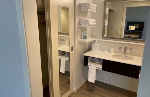 Recreational amenities at the hotel include a waterslide, an indoor pool, and a fitness center.