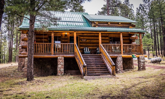 A hiker, skier, birdwatcher, and flyfisher paradise! Beautiful traditional 1 and 1/2 bath full round log cabin on one acre on the scenic Wonderland Road with conventional floor plan: downstairs bedroom with queen Tempur-Pedic bed, upstairs loft with one queen and one twin Tempur-Pedic bed, and two new downstairs full futons. Instant hot water heater, stacking washer/dryer, woodburning fireplace, solid ashwood flooring, ski and snowboard racks, back deck gas grill, front 34x7' foot deck looking out over National Forest. Many coat hooks for storage of gear. Gas stove and oven, disposal, new small appliances and kitchen tools. 12 miles to Sunrise Ski Area, 1/2 mile to Little Colorado river, 1.1 miles to River Reservoir South parking area, 3 miles to Tunnel and Bunch reservoirs, 6.5 miles (28 min) to Lee Valley reservoir, 35 min to Big Lake, 1 mile to Molly Butler Lodge. Telephone, cell booster, free WiFi so you can stay connected as desired. 32" flat screen HD TV, Direct TV, Playstation 3/Blu-ray/CD/DVD player, sound bar. The perfect way to enjoy your holiday! 1215 Sq Ft.