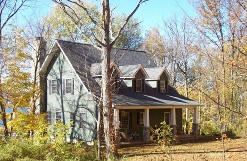Luxury lake home built in 2004, located on a large private lot. Woods on one side, a creek on the other and the lake in front offer privacy, tranquility and beautiful views. Interior is decorated beautifully with solid cherry hardwood floors on the main level, corian countertops, comfort appliances and new furniture. There is a gas-burning fireplace on the lower level and a heat producing wood-burning fireplace with stone masonry on the main level. The house has central air conditioning.