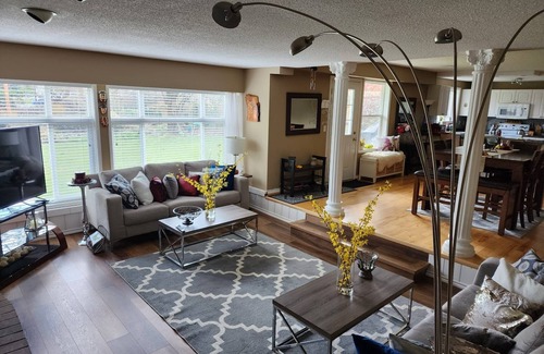 This spacious almost 1400sqft suite on a .63-acre lot nestled in the heart of Sardis will provide you with all you need for a relaxing stay.Walking distance to transportation, restaurants,shops,kids park and Sardis park that you can enjoy a stroll around the lake that is a migratory for 1000’s of birds.it’s very easy access and central to any destination Whether it’s Charter fishing,Fraser and Vedder River,Rotary trails,Cultus and Chilliwack Lake,Hot Springs and anything else you want to enjoy.