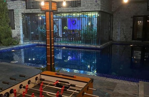Featuring an outdoor swimming pool, a garden, and a shared lounge, Cheerful luxury 5 - bedroom villa with pool ( Ayu villa ) provides accommodation in Rāmnagar with free WiFi and garden views. This villa features free private parking and room service. Composed of 5 bedrooms, this air-conditioned villa features 5 bathrooms with a hot tub and a hairdryer. The kitchen is equipped with a fridge. The daily breakfast offers à la carte, continental or Full English/Irish options. Speaking English and Hindi at the reception, staff are always at hand to help. A terrace is available for guests at the villa to use. The nearest airport is Pantnagar, 80 km from Cheerful luxury 5 - bedroom villa with pool ( Ayu villa ), and the property offers a paid airport shuttle service.