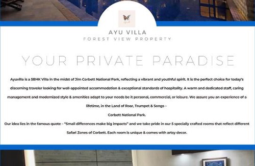 This Cheerful luxury 5 - bedroom villa with pool ( Ayu villa ) in Rāmnagar is well equipped and has all facilities that have been listed below. Please note that these details were shared to us by booking.com for the listed “Cheerful luxury 5 - bedroom villa with pool ( Ayu villa )”. We solely rely on their shared details and are regarded as “accurate”. If you have any concerns about the information or accuracy describing this Villa, please let us know.