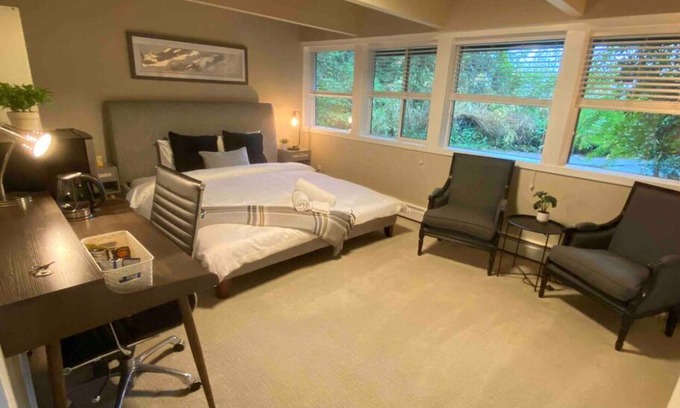 Take it easy at this unique and tranquil getaway! We are happy to offer you a nicely decorated master bedroom, King bed organic mattress. In room amenities fridge, kettle and microwave, Our home offers a unique and harmonious living experience where the essence of community and the serenity of nature converge in harmony. Caulfield Village with Safeway, Subway, Starbucks, Cypress park falls and Horseshoe bay ferry terminal are all just 5 minutes away. Room #2 Relax and Enjoy your stay with us!