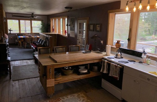 This is a historical building built in 1880 that was the local meat market and then later to became a Cheese Factory (creamery) which it is locally known as today. Nearly condemned in the 1980s a very ambitious carpenter decided to not only make it livable but expand the attic to create a very unique living space.