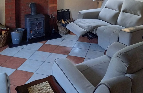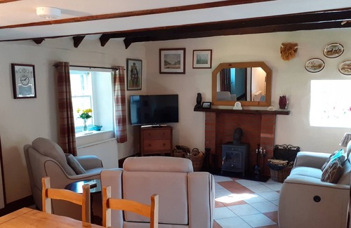 The cottage has a fully equipped kitchen, central heating, open plan living/dining room with exposed wooden beams and a wood burning stove.