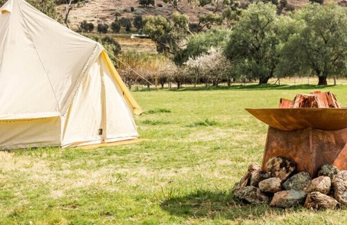 Set in front of a stunning backdrop of cherry blossoms and citrus trees our Cherry Blossom Glamping Tent at La Paloma Farm is a gorgeous and welcoming stay in the heart of central NSW. The tent features a comfortable Queen bed, heating and a curated welcome basket of wine and treats to ensure you feel pampered from the moment you arrive. Wake up to views of the mountains, witness incredible sunsets, gaze at the milky way at night and hear the tranquil sounds of the Australian wildlife.
