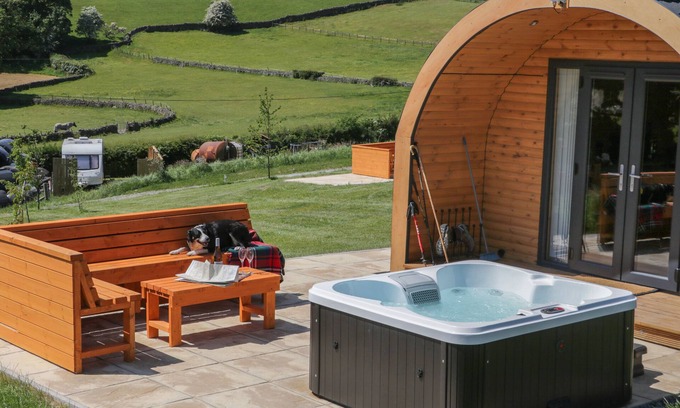 Amenities: Electric heating. 2-ring halogen hob, microwave, fridge, kettle, toaster. Smart TV. WiFi. Fuel and power inc. in rent. Bed linen and towels inc. in rent. Off-road parking for 1 car. Private front decking area with furniture and hot tub. One well-behaved dog welcome. Sorry, no smoking. Shop 1.1 miles, pub 0.7 miles. Note: Dogs must be kept on a lead at all times as the property is located on a working farm with livestock and farm dogs