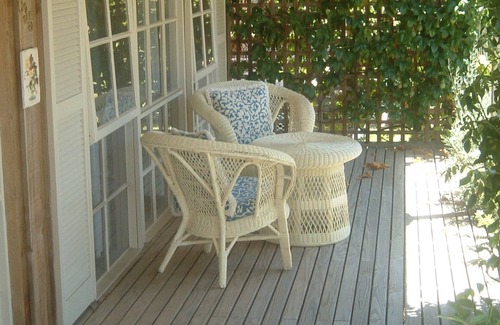 Cherub Cottage is a romantic two bedroom cottage. Totally self contained and has features including two bedrooms - four poster queen size bed in main bedroom and the second bedroom also has a queen size bed. Double corner spa in bathroom, large wood fire, reverse cycle air-conditioning and heating, TV, DVD and Stereo system. Fully equipped kitchen with fridge/freezer, oven and microwave. Laundry, washing machine. An outside BBQ. There is ample off street parking for cars and boats. Rural outlook. There is only a 4 minute walk to the beach and a 5 minute drive to the shops (or half an hour walk along the beach) 9 minute drive to the Penguin Parade. Occupancy is 4 people, Check-in 2pm, Check-out 11 am.