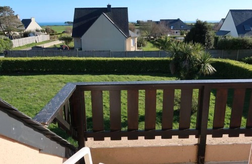 Cosy 2-family house "Chez Cathy". In the resort 700 m from the centre of Plougonvelin, 25 km from the centre of Brest, 1 km from the sea, 2 km from the beach, in a cul-de-sac. Private: property 85 m2, well-kept garden with lawn and wildlife garden. Patio (60 m2), garden furniture, barbecue, parking on the premises. Shop, supermarket 600 m, restaurant 1 km, bakery 600 m, bus stop 350 m, railway station "Brest" 2.3 km, sandy beach "Plage du Trez Hir" 2.3 km, indoor swimming pool 2.5 km. Golf course (18 hole) 15 km, surf school 6 km, sailing school 2.5 km, walking paths from the house 1 km. Nearby attractions: Fort Bertheaume, Iroise Aventure 2.3 km, St Renan 14 km, Pointe de Saint Mathieu 3.6 km, Le Conquet 6 km, Lanildut, Pays des Abers 20 km, Océanopolis Brest 35 km. Hiking paths: GR34, sentier des douaniers 1 km. Owner lives in separate semi-detached house.