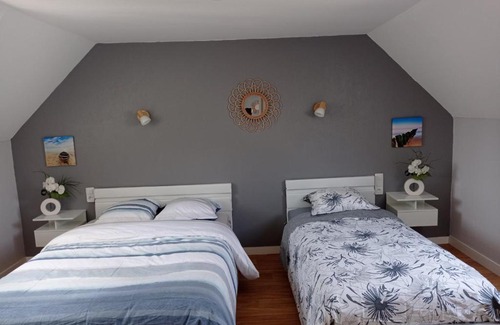 Chez papy plage is located in Kerlaz, just 14 miles from Departmental Breton Museum and 14 miles from Quimper Train Station. This property offers access to a terrace, free private parking, and free Wifi. Outdoor seating is also available at the vacation home. This vacation home includes 2 bedrooms, a living room and a flat-screen TV, an equipped kitchen with a dining area, and 1 bathroom with a shower and a washing machine. Towels and bed linen are featured in the vacation home. There's also a seating area and a fireplace. Guests at chez papy plage can enjoy walking tours nearby, or make the most of the garden. Popular points of interest near the accommodation include Trezmalaouen Beach, Plage du Ris, and Kervel Beach.