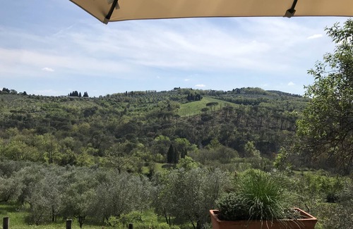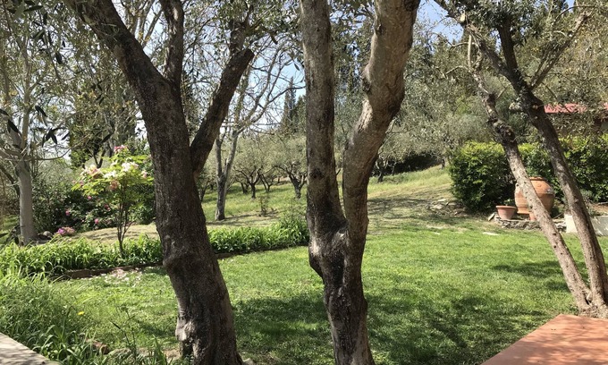 Quiet property with a courtyard and a loggia, surrounded by an olive grove and overlooking a breathtaking valley. The house is very well connected both to Florence and to the main Tuscan cities of art, all of which can be visited in a day. The Impruneta, capital of Tuscan terracotta is a very pleasant country, with shops and restaurants and can be reached on foot in a quarter of an hour.