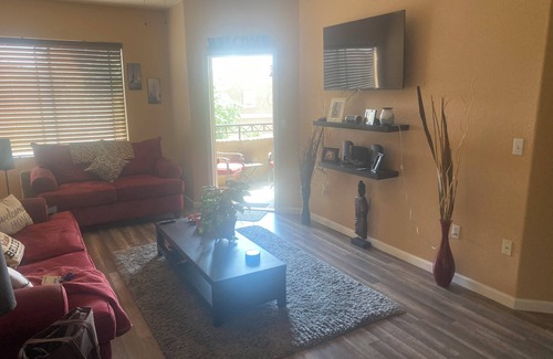 Nestled in Phoenix, this charming apartment offers a serene retreat for guests. The cozy bedroom features a comfortable queen bed, perfect for a peaceful night's sleep. With amenities like AC, heating, and laundry, guests can relax and unwind with ease. Our place is equipped for both long or short stays to make your holiday one to remember. Close to shops and bars! Outdoor pool and BBQs for you to dine in or entertain some friends. Also can use our clubhouse which has some big tvs and gaming area for you to use!