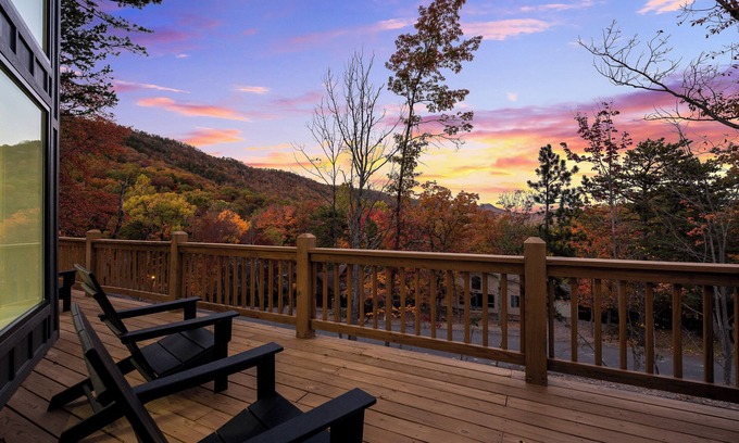 🌄 Breathtaking mountain views from oversized windows and front porch rocking chairs