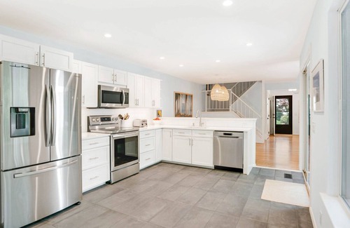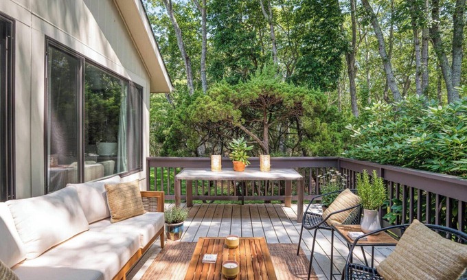 Tucked away in the peaceful woodlands of East Hampton, this charming and modern corner condo offers a stylish and comfortable retreat designed for effortless indoor-outdoor living. Surrounded by lush greenery and mature trees, the home delivers a true sense of privacy while being centrally located just minutes from the heart of East Hampton Village. With three well-appointed bedrooms, two full bathrooms, and an additional sleeping area on the finished lower level, the home comfortably accommodates up to seven guestsperfect for families or groups seeking a serene beachside getaway with all the conveniences of modern living.