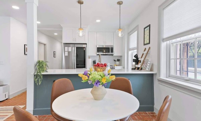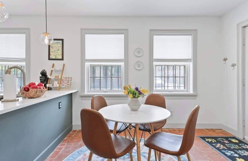 Inside this thoughtfully renovated garden-level apartment, you’ll find an open concept kitchen, dining, and living room, with the coziest couch. Enjoy a smart TV to stream your favorite shows and stocked games for rainy day fun. You will also have a spacious desk perfect for remote work.