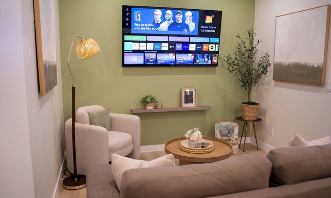 • Living Area: Relax in a spacious open-concept living room featuring comfortable seating, a smart TV, and tasteful, modern décor.