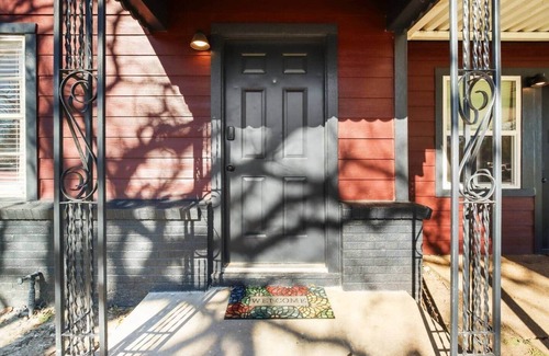 Add a little glitter and glam to your Aggieland stay at our Breakfast at Tiffany's-inspired home. Elegantly designed and decorated, this 3-bedroom, 2-bathroom house is perfect for hosting, featuring 4 twin beds and 2 king beds. The spacious layout offers plenty of room for hangouts, while the chic, sparkling décor exudes luxury. Located near Texas A&M and Northgate Entertainment District, you'll be close to all the best hotspots. "A girl can't help if she likes a little luxury." The front two bedrooms share a bathroom with a tub. The primary bedroom, located at the back of the house off of the 2nd living room, has a private bathroom with walk-in shower. This home is attached to a studio-apartment that sleeps 3 that can be rented separately if additional space is needed. Both units have independent, private entrances.