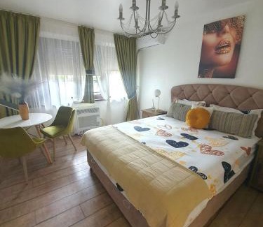 This apartment features air-conditioned accommodations with free Wifi. ChicStudio feel at home features 1 bedroom, a fully equipped kitchenette with a microwave, a washing machine, and 1 bathroom with slippers and a hair dryer. Towels and bed linen are available in the apartment. For added privacy, the accommodation features a private entrance. Mihail Kogălniceanu International Airport is 106 miles from the property.