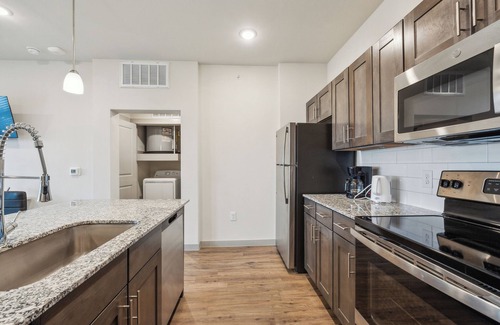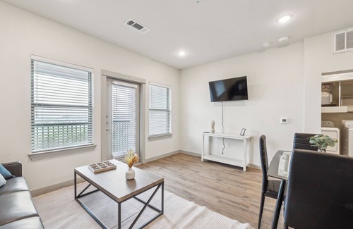This modern unit features upscale décor, a fully equipped kitchen, cozy living space, and all the essentials for a comfortable stay. Enjoy high-speed Wi-Fi, in-unit laundry, smart TV, and a peaceful setting just minutes from Fort Worth and Dallas. Whether you're here for work or relaxation, this space is designed to feel like home.