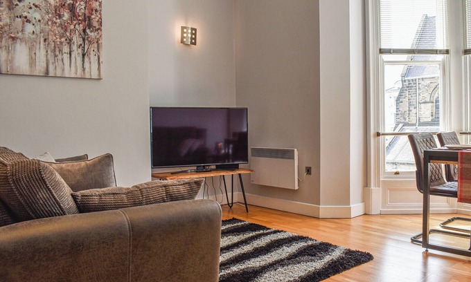 Bathroom: Bath With Shower Over, Toilet. Electric central heating, electricity, bed linen, towels and Wi-Fi included. Travel cot and highchair available on request.. Parking permit for 1 car included. No smoking.. Aptly named Church View Apartment you are only a 2-minute walk from the cliff top, with a footpath leading to the long golden beach below. You are in the perfect position to explore the beautiful coastal town of Scarborough on foot, with both the north and south bay as well as the many independent shops, cafes, bars and restaurants nearby. Easby Hall is located just off the esplanade, directly over the spa hotel. This grand building, with its high ceilings and tall sash windows has a beautiful period feel throughout. An external sweeping staircase leads you up to the front door, with either a lift or stairs leading up to the first floor.