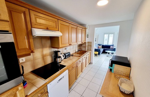 EQUIPMENT: 3 induction hobs, fridge, freezer, oven, microwave, washer-dryer, dishwasher, TV. Reserved garage 200 meters away. Pets not allowed. Possibility of end-of-stay cleaning (€50 + €1 per m²), linen rental (pair of sheets €18 and towel €10/pers) and WiFi box rental (€39/week). A cleaning deposit may be required. Registration number: [hidden]