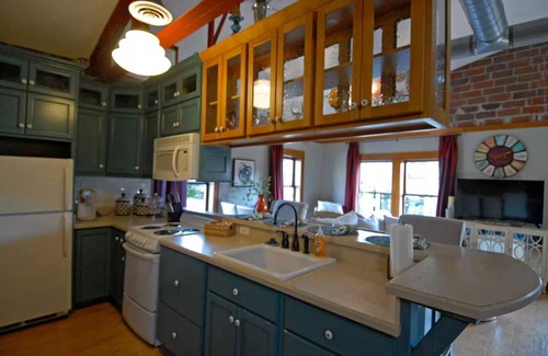 The unit has 1 king size bedroom, 1 queen in its own alcove, and the also have a pull out queen bid in the main area.. These carefully curated units boast 9-14 ft. ceilings, custom Amish Cabinetry, ceramic-tiled bathrooms, and custom doors and trim, offering a glimpse of the past with modern comforts.