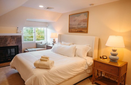 Inside, the suite is tastefully appointed with quality furniture and stylish decor, professionally curated to create a welcoming atmosphere. The master suite is a true retreat with its own fireplace, offering a cozy ambiance that's perfect for unwinding in the evenings.