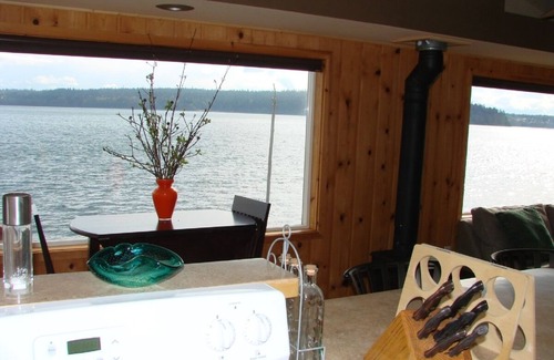 Great 180 degree Views of Southern Puget Sound from Southern Vashon Island. Tacoma city and Commencement Bay night light views and during the day includes views of Mount Rainier and Point Defiance. The home is a cozy 1 bedroom with a king size bed, 1 bath with a shower and unique 1/2 size bathtub. The views are amazing from the bedroom, kitchen and living area. At high tide you feel like you are on a boat. Access to our private boat ramp for kayak, SUP, or other small watercraft. Come enjoy being on the water!