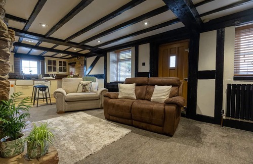 Living Room & Dining - Luxurious cosy living space with two relaxing sofas after a long day of working for up to three guests plus workspace for a laptop, complete with Bio Fuel burning stove.