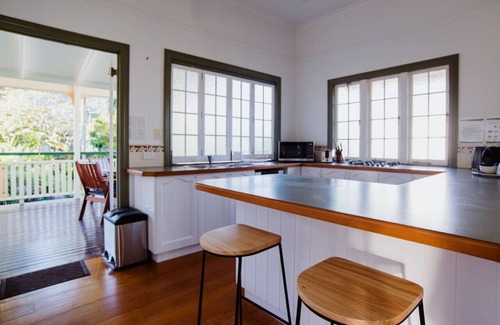 Step into the charm of our old Queenslander home, where the kitchen, living, and dining areas seamlessly blend tradition with modern comfort. The kitchen exudes character with its vintage fixtures and ample space for culinary exploration, while the living area invites relaxation with its cozy ambiance and classic furnishings. Adjacent, the dining area beckons with its warm atmosphere, offering a perfect setting for gathering and sharing stories. In this cherished space, every corner tells a story, inviting you to savor the timeless elegance of Queensland living. The kitchen is fully equipped with basic essentials, condiments, tea, coffee, and milk.