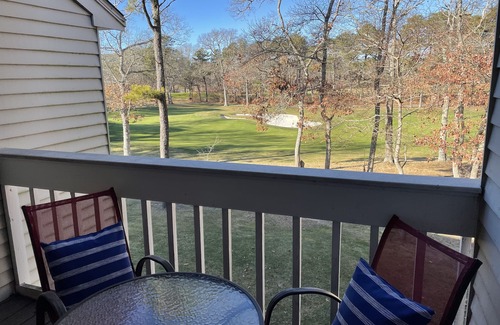 Escape to the Cape in this NEWLY UPDATED, air conditioned, two bedroom / two bath second floor condo unit located in the Eaton Village of the Ocean Edge Resort. Centrally located between two of the largest pools at the resort and close to the Links restaurant, this FRESHLY PAINTED condo features GLEAMING NEW WOOD FLOORS with an open layout. Private deck off the living room overlooking the golf course. Fully equipped kitchen with washer and dryer. Master bedroom with queen bed and en suite bathroom. Second bedroom has two NEW twin beds with full bath right across the hall. Cable TV and HIGH SPEED WIFI. Cleaning included.