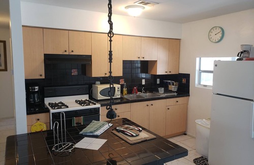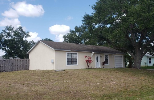 Located in Port St. Lucie central, enjoy what this 2-bedroom house has to offer. This beautiful property features 1 queen bed and 2 twin beds, perfect for a small group of guests. With gas heated swimming pool, AC, Wi-Fi, covered back patio and a cozy living room, your stay will be superb. We'll be available to answer any questions while you stay at our place.