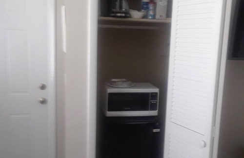 Three rooms one queen bed, one bath, and living rm. Ideal for a couple to have a get away! Close to the yacht club beach, and even closer to downtown restaurants and bars. If your a boater ask about bringing your boat to put in the canal behind the rental. Suite is 450 square feet with small frig, microwave, and coffee maker. It is connected to my house but a totally separate suite, with a separate entrance.