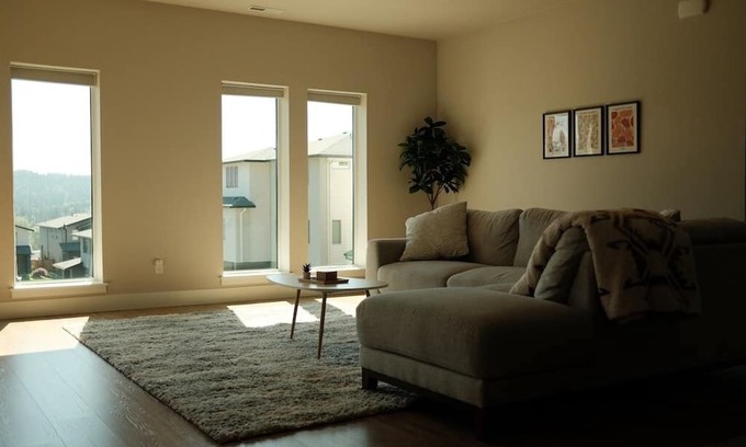 Escape to our serene 5-bedroom Japandi home with stunning Mt. Hood views. Enjoy breathtaking sunrises and sunsets, 3 full bathrooms, a back patio with a grill, a 77-inch TV, and a standing desk with a 27-inch monitor. Located in a peaceful neighborhood, it features a Tesla charger and is just 1 hour from skiing at Timberline Lodge and 20 minutes from PDX airport. Perfect for relaxation and adventure!