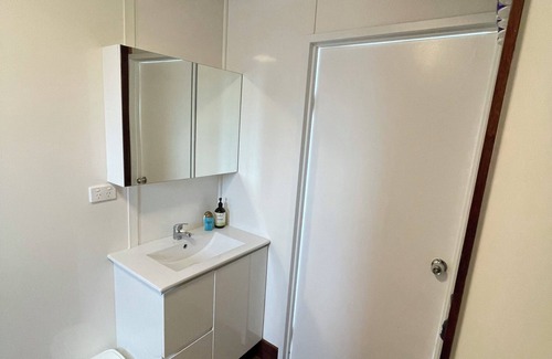 Recently refurbished cabin, Centrally located in the heart of the picturesque Atherton Tablelands. The cabin is situated on a main entrance road two minutes drive to the bustling Atherton town centre. There is ample off street parking and a high fence for privacy. The cabin is small 8.5m x3.0x 2.4 + a full size bathroom as shown in the pictures and accommodates from 1 to 4 persons. There is a laundry underneath the cabin accessed by a concrete ramp . All linen is supplied. The kitchen is very basic with just an induction style hotplate. All crockery and cutlery supplied. T.V & high speed Internet.