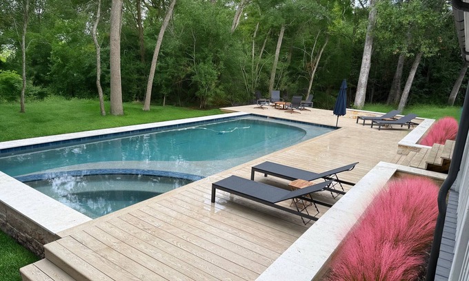 Yes, this Round Top house has a swimming pool. Check the Facility Overview section for details about the pool and other available facilities.