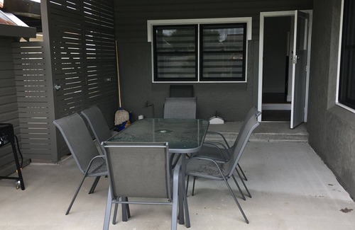 The secure yard has plenty of room for the kids to run around. Fantastic undercover area with BBQ and outdoor dining.