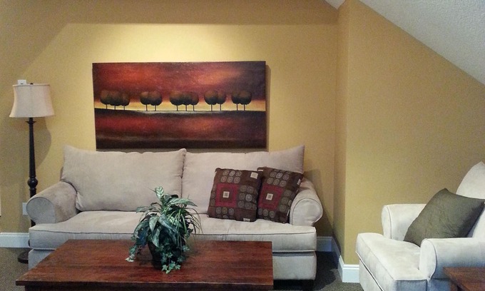 Fully furnished 1 bedroom suite with full kitchen and bathroom. King sized bed with luxury bedding. Includes all kitchen utensils, towels and linens. Separate entrance with free parking. WiFi, cable and utilities included. Located in center of town close to everything. We have 2 fresh water beaches within a 5 minute drive from us and the ocean is about an 8 minute drive.