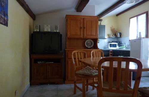 At the foot of Mont Sainte Victoire house of 45 m2 located on the grounds of the owners. Living / dining room with sofa bed for 2 people. Open kitchen. 1 room with 1 bed 2 places. Bathroom with toilet. Garden, terrace with garden furniture with superb views of the mountain of Sainte Victoire. Quiet countryside, ideal for hikers. Private parking. Heating included.
