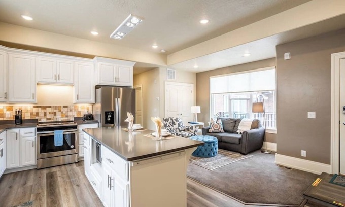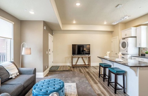 Luxury living in downtown Provo. This new one bedroom, one bathroom apartment offers all the comfort and convenience one could hope for. 1 gig internet and 58" smart TV complete the comfort. The oversized kitchen provides the perfect spot for cooking and staying in. The views of Mount Timpanogos out the front window reminds you why you came to Utah. Its location in downtown Provo and across from Smiths Food and Drug give it the perfect location for all things Provo.